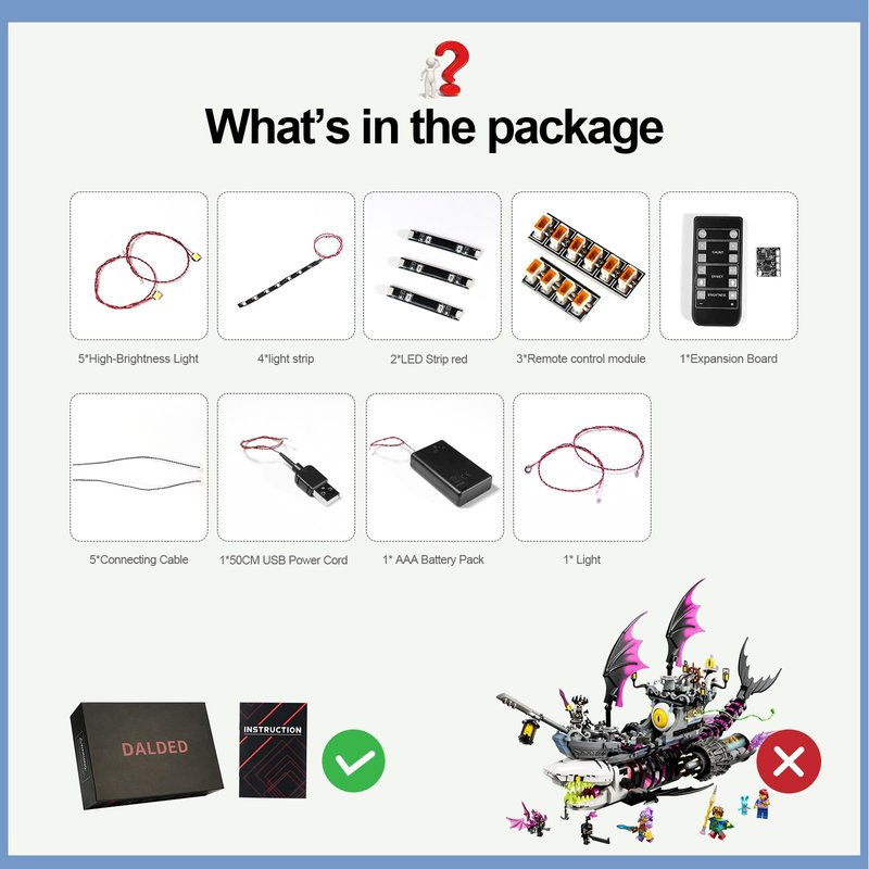 DALDED LED Lighting Kit for Lego DREAMZzz Nightmare Shark Ship 71469, LED Light Compatible with Lego 71469 Building Block Models (Not Include Lego Set)