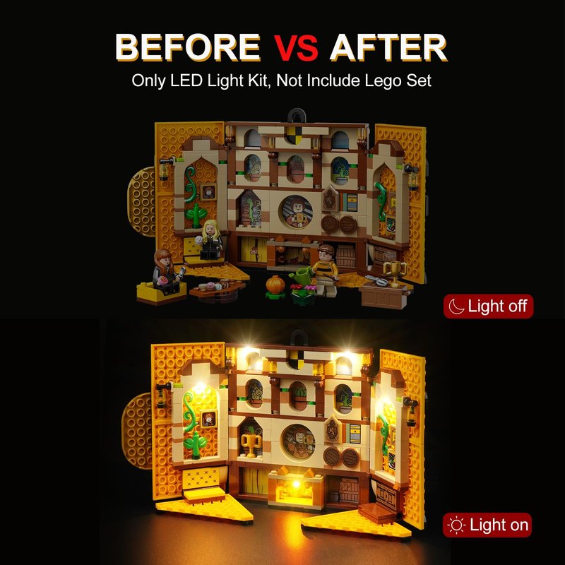 - 💡 [Unique Design] This LED light set is specially designed for Lego Harry Potter Hufflepuff House Banner 76412, let your LEGO model go from darkness to light and become a vibrant masterpiece.