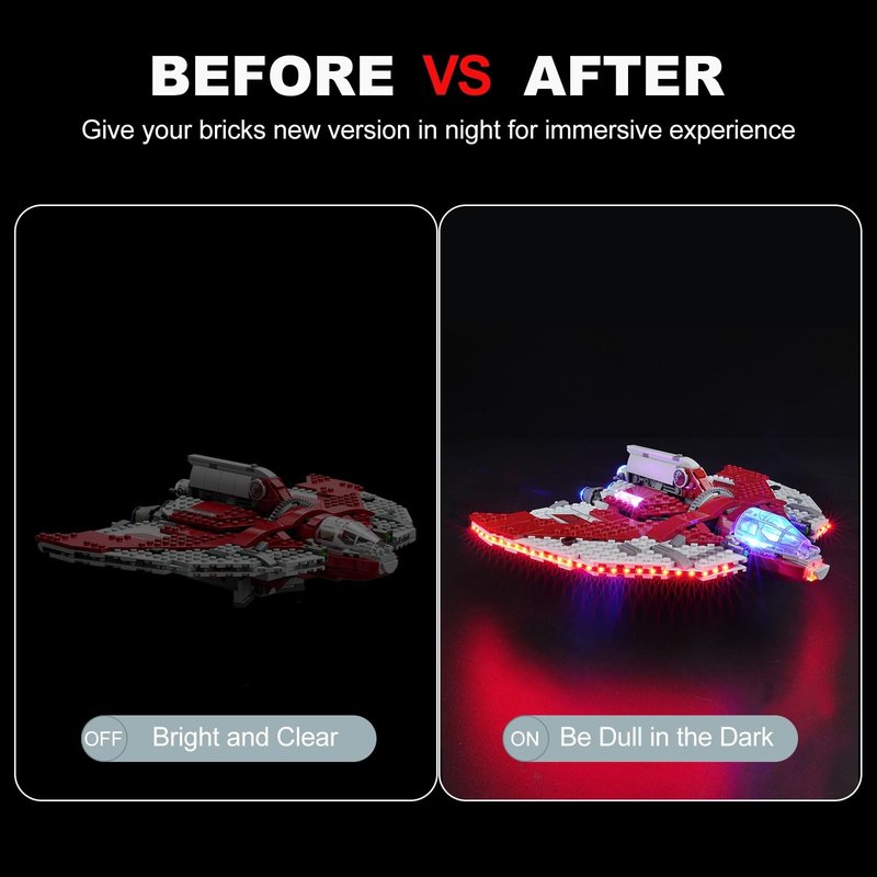 - 💡 [Unique Design] This LED light set is specially designed for LEGO Star Wars Ahsoka Tano's T-6 Jedi Shuttle 75362, let your LEGO model go from darkness to light and become a vibrant masterpiece.