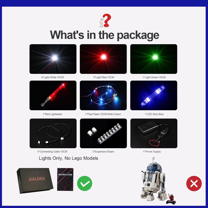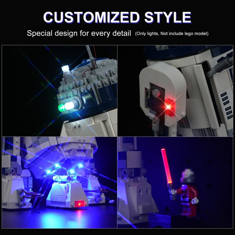- [Best Gift Choice] For Lego Star Wars R2-D2 light kit set is the best gift choice for kids or building block players who are interested in DIY, it can make your model become a fascinating and cool display, bring players a colorful and interesting exploration experience.