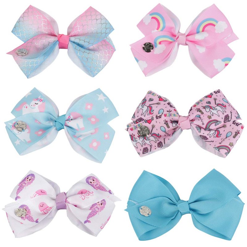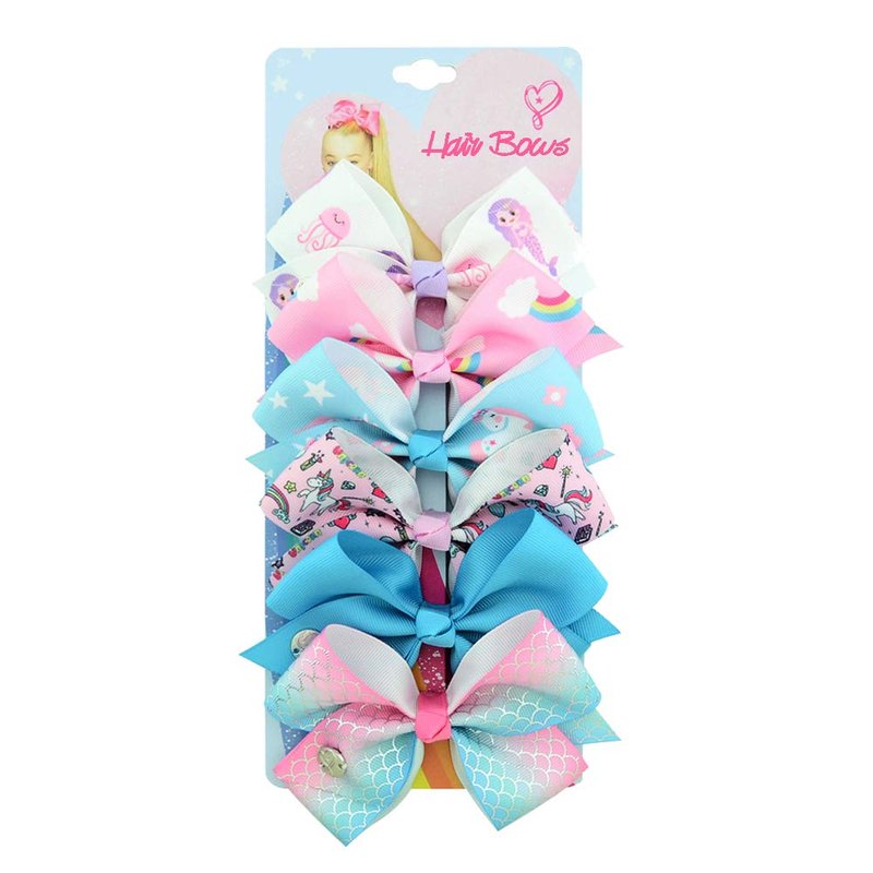 Dalin 6Pcs Siwa Hair Bows for Girls,5 Inches Hair Bows for Girl Grosgrain Ribbon Hair Barrettes Accessories for Toddler