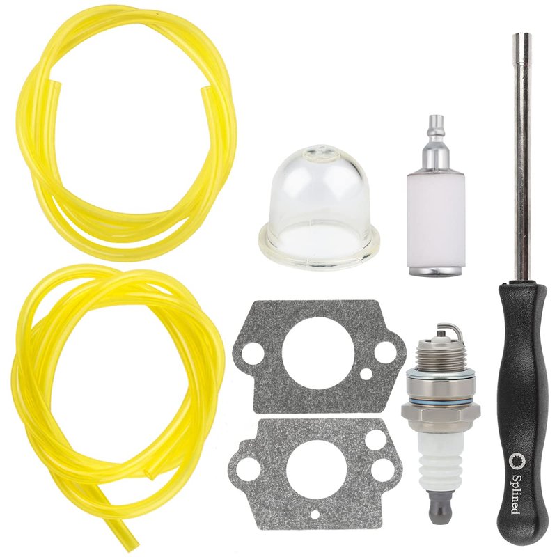 - You will get: 1 carburetor, 1 fuel filter, 1 primer bulb, 2 tube, 2 gaskets, 1 spark plug. This high-quality item has a durable metal body . To avoid purchasing the wrong engine parts, please double-check your engine's model and part numbers prior to making your purchase.