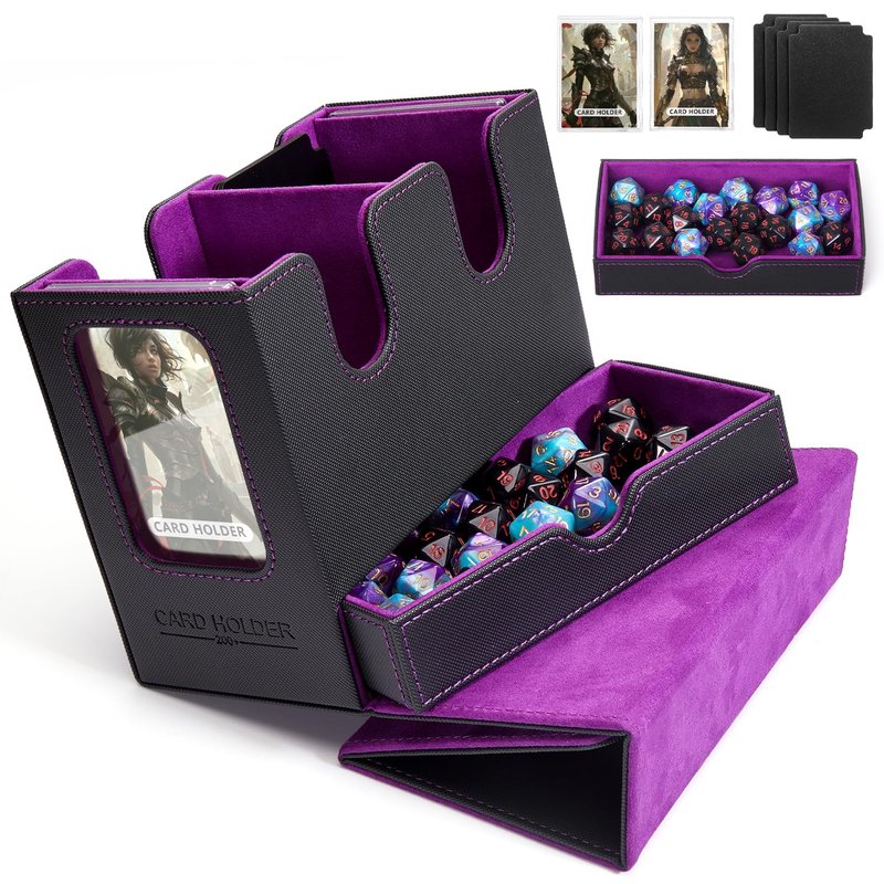 DaluRunhe Mtg deck box for Commander Deck Box with Dice Tray Fits 230 Cards, 4 in 1 for Magic TCG CCG Deck Card Boxes Case Storage, Includes 4 Dividers Trading Deck Box, Black/Purple