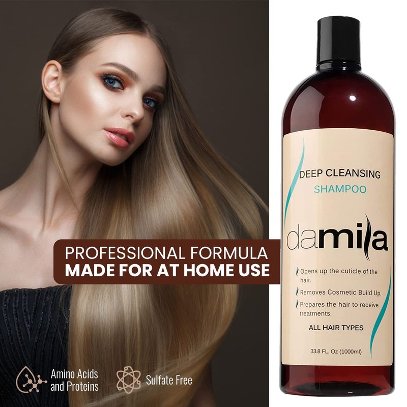 damila Deep Cleansing Shampoo - Clarifying Shampoo For All Hair Types - Degreases, Removes Residue and Product Build Up - Prepares Hair for Keratin Hair Treatment (4 Fl Oz)