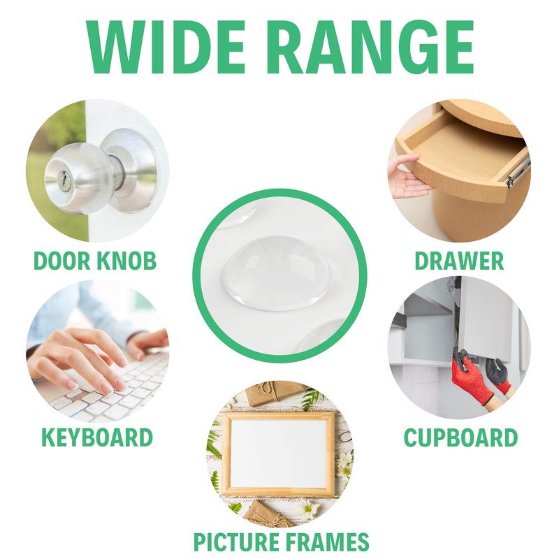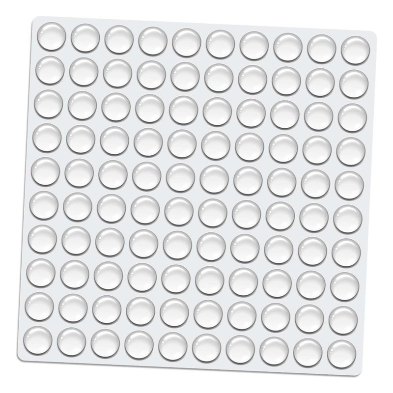 - PACK INCLUDES: Sheet of 100pcs Hemispherical shaped cabinet bumpers measuring 10mm Diameter x 3mm Thickness, made of Top Quality Silicone Material having transparent color or Clear
