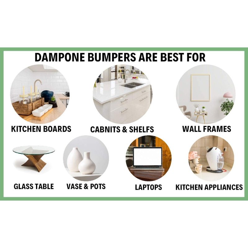 Dampone Cabinet door bumpers have been designed to reduce the unwanted door slamming noises. These bumper pads goes unnoticed because of its Top quality Silicone material which helps bumper pad to camouflage itself and indulge with variety of surfaces i.e metal, ceramic, wood, plastic etc. Damopne cabinet door bumper comes with 3M strong adhesive which increases the life span of product usage.