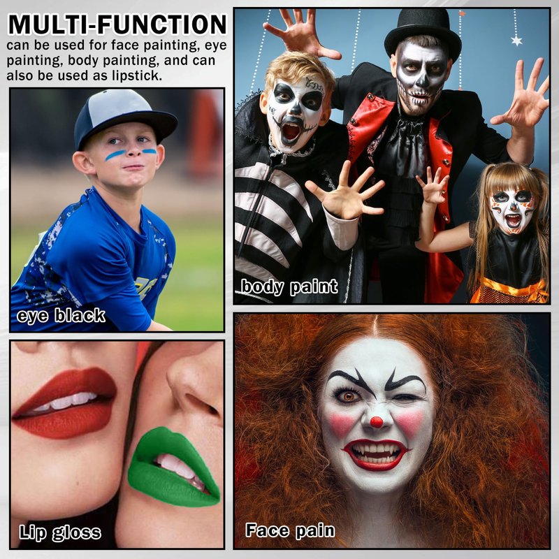 - 【Multi-purpose】Face paint sticks set has a generous and beautiful appearance, is easy to carry, and can meet the needs of a variety of sports, as well as clown makeup, cosplay, and Halloween vampire makeup parties.
