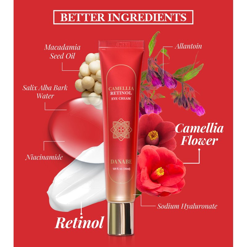 - RENEWED RADIANCE WITH KOREAN RETINOL EYE CREAM. Powered by Salix Alba Bark Water, DANABE Camellia Retinol Eye Cream visibly targets puffiness, dark circles, and fine lines, while Retinol stimulates collagen production for a revitalized under-eye area. Unveil a bright and radiant gaze with our eye cream for men and women.