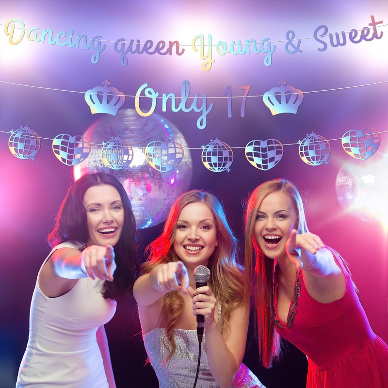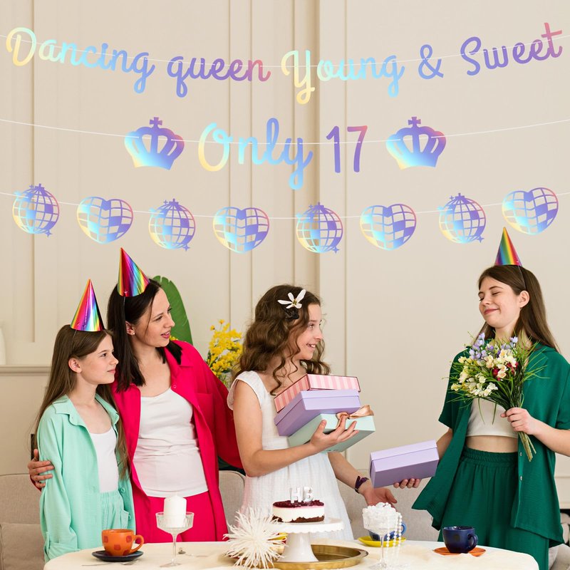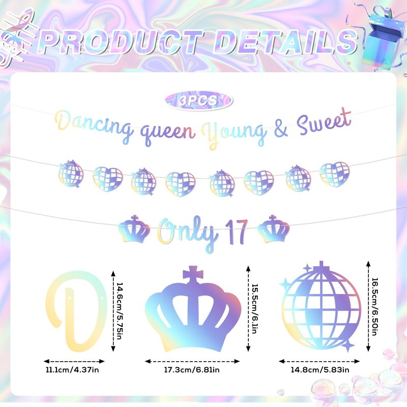 - What You Get: You will receive a beautiful birthday banner set themed "Dancing Queen Young & Sweet Only 17", containing 3 pieces of dancing queen themed banners! The banners are designed to create a glamorous atmosphere for the party and make the celebration even more memorable.