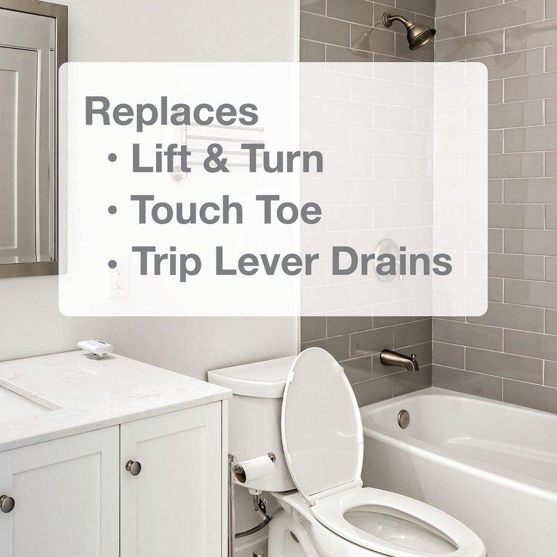 - Replaces lift and turn, push button and trip lever drains