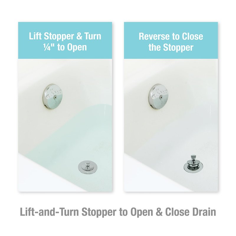 - EASY TO USE: The bathtub drain stopper features a lift-and-turn style allowing for easy use, simply lift the stopper and give it a ¼ in. turn to lock it in the open position and reverse to close the stopper to fill the tub with water.