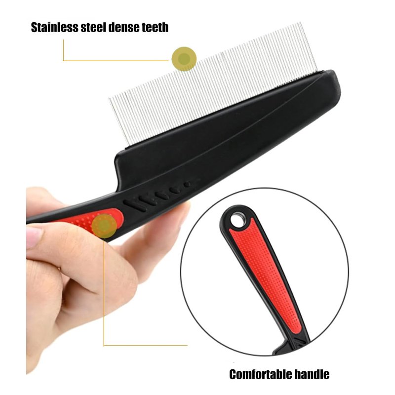 - Dandruff removal comb set - 1 Stainless Steel Fine toothed Dandruff Comb (Red Long Handle) + 1 scalp comb (with button); made from high-quality stainless steel for durability. Suitable for all hair types, including curly and straight hair.