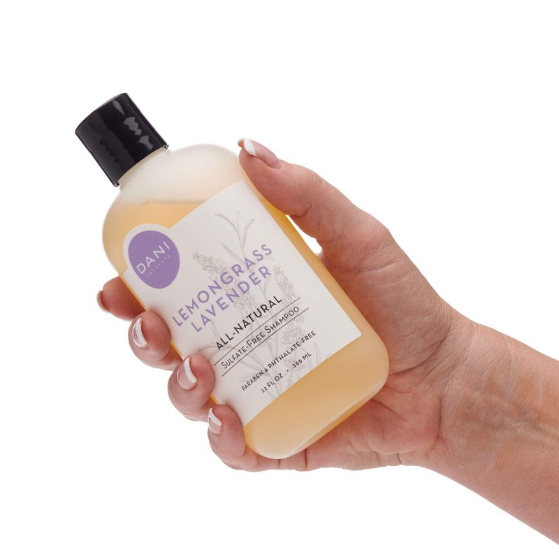 DANI Sulfate Free Lemongrass Lavender Shampoo is incredibly gentle, and designed for daily use. Our pure, coconut-derived cleansers are low sudsing and rinse away cleanly, while organic aloe vera and allantoin work to moisturize hair and soothe dry scalp. This natural formula is pH balanced and safe for color treated hair. DANI creates all our scents using custom essential oil blends, for the best smelling fragrances available. Our Lemongrass Lavender scent is a wonderful balance between the calming power of lavender and the uplifting benefits of lemongrass. Add a hint of bergamot, geranium and rosemary and you have the perfect scent for mind, body and soul.