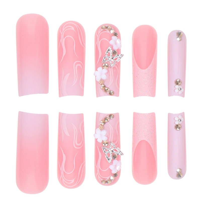 - 【Various sizes】Press on artificial butterflies nails have 12 different sizes of nails, 24Pcs fake nails, and the free strips can be trimmed to any size you like and fit