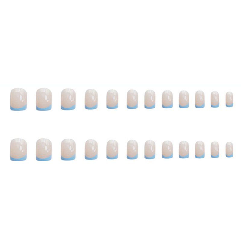 DANMANR Medium Press on Nails Full Cover Fake Nails Acrylic Stick on Nails False Nails for Women and Girls (French blue medium nails)