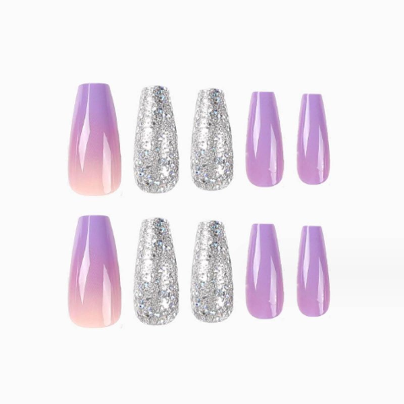 DANMANR Medium Press on Nails Sequins False Nails Art Full Cover Acrylic Coffin Purple Fake Nails for Women and Girls 24PCS
