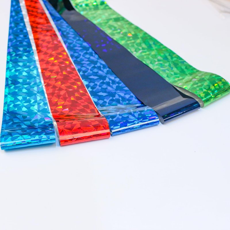 - iridescent Cellophane Nails Design -- The transfer foil for nails have cellophane design, the cellophane luster will exhibit different colors depending on the angle of illumination, shining and charming, provide nail designers with a variety of choices.