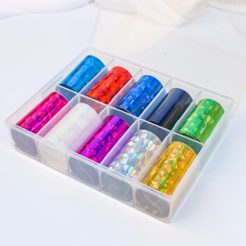- Package Contain -- 10 rolls iridescent nail foil sheets, each with a size of about 1.6*39.4 inches; box size about 4.1*5.1 inches, large capacity color and patterns makes your every nails like a beautiful art painting, charming and elegant.