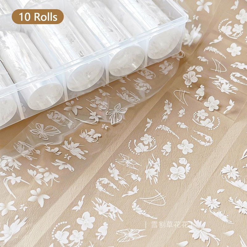 DANNEASY 10 Roll White Flower Nail Foil Holographic Nail Foils Transfer Foil for Nails 3D Nail Stickers Decal Nail Art Foil Sheets for Women DIY Manicure Decoration