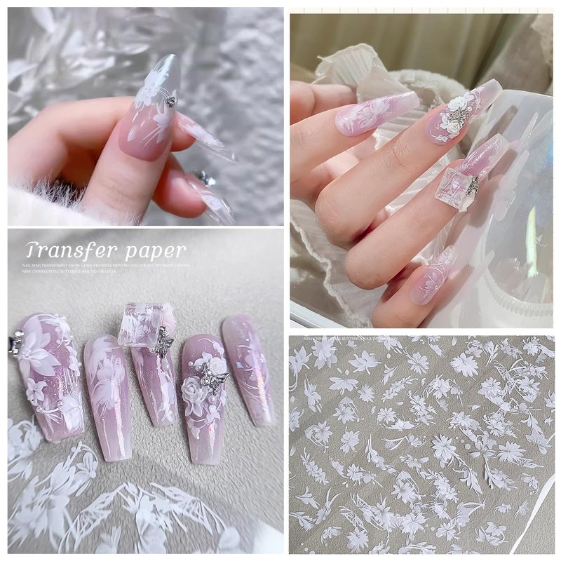- Elegant White Flower Design -- The Beautiful white flower nail foil paper, the design simple and elegant, sufficient quantity and different shapes, adding a unique charm to your nails.
