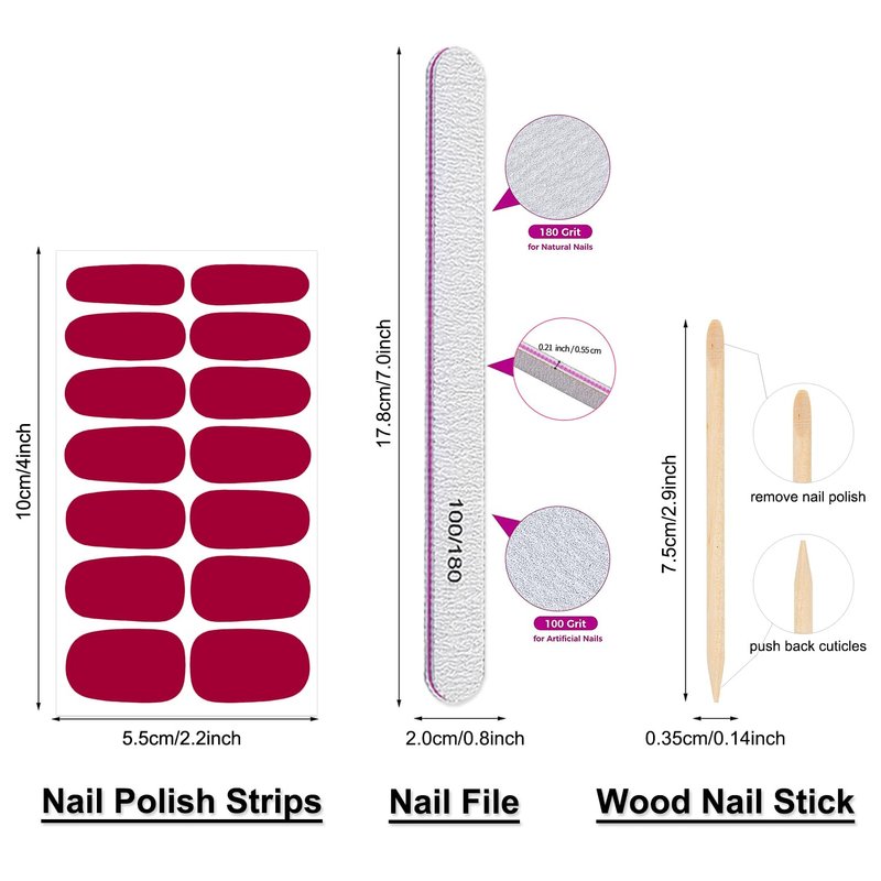 - [High Quality] Our fingernail polish stickers made of new materials, safe and odorless, bringing no hurt to your nails, also the full nail strips have 7-14 days long-lasting, not easy to bubble and DON'T REQUIRED UV LIGHT.