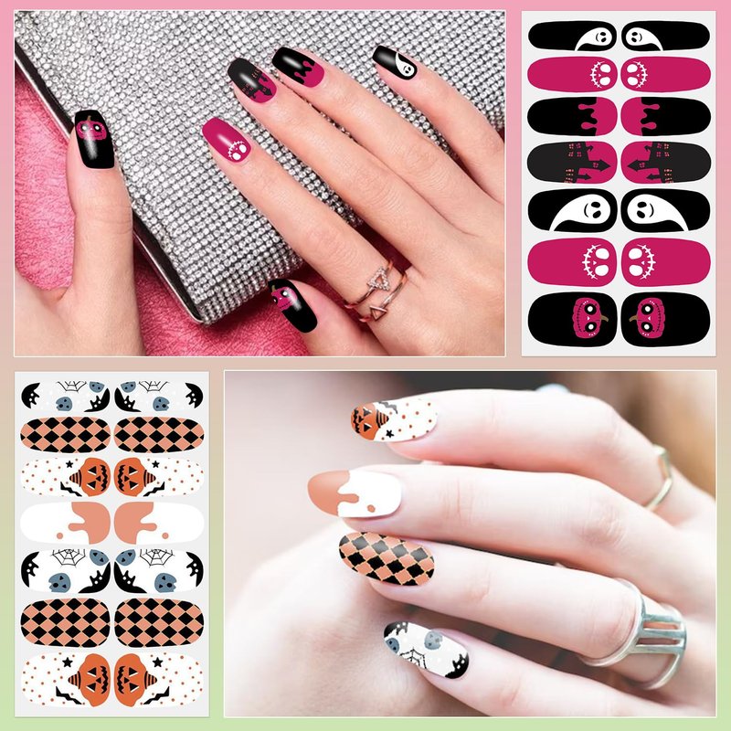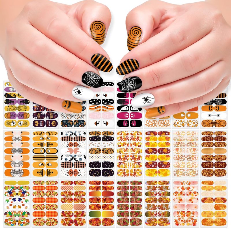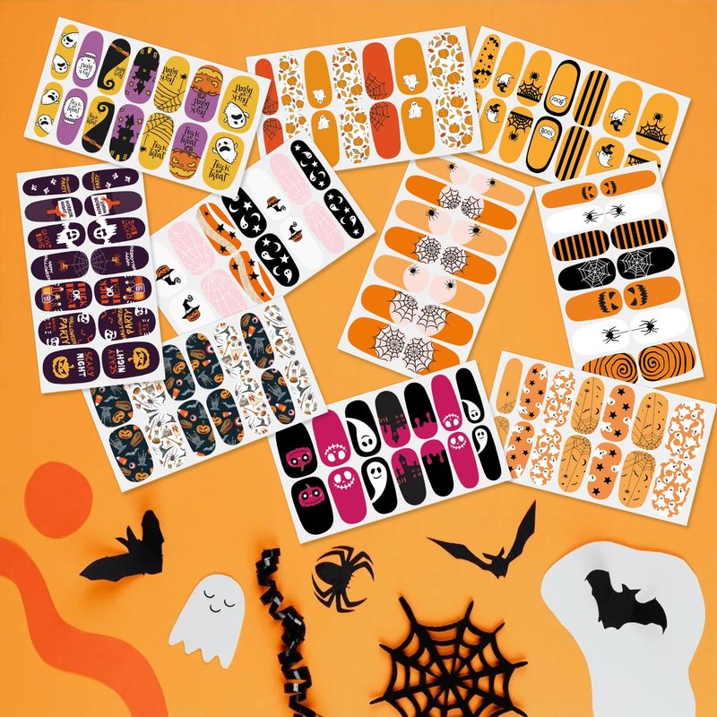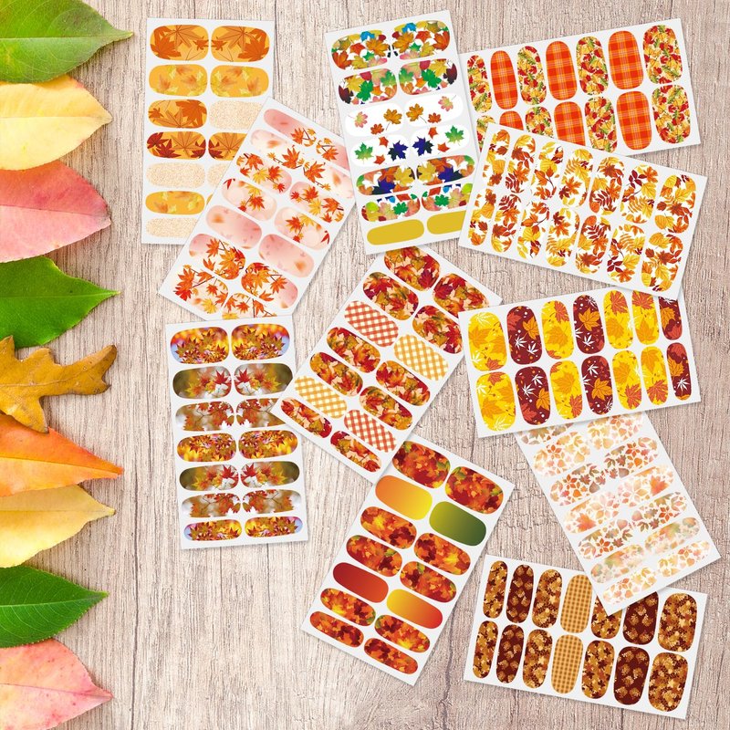 - [Holiday Nails Design] Designed exclusively by DANNEASY, the gel nail wraps include various fall and Halloween elements are combined with a mix and match of light and dark, solid, gradient colors. match nail decoration, nail decals and other nail accessories, you can easily obtain elegant nail art.