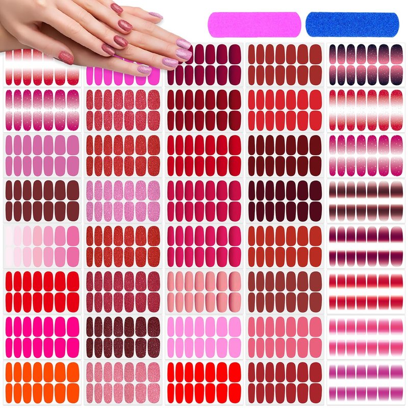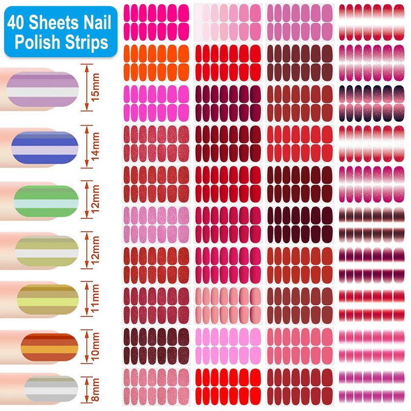 - [Package Included] You will get 40 sheets gel nail wraps, each nail strips has 14 pieces nail tips and 7 sizes, to suitable for most people's nail size. the attached nail file and cuticle stick will help you finish the nail work better.
