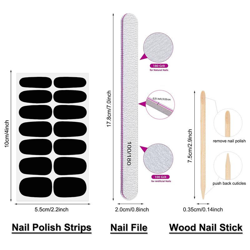 - [Stylish Black Color] Designed exclusively by DANNEASY, the nail gel strips designed black style, match nail decoration, nail decals and other nail accessories. you only need a simple operation to obtain young and fashionable nail design.