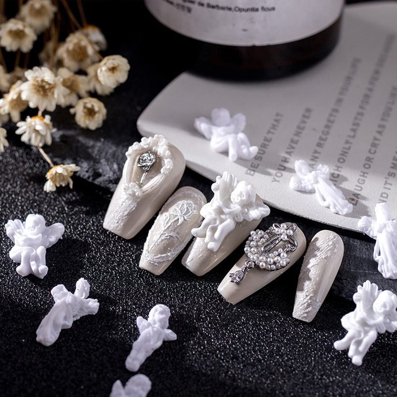 - 【Package Content】 90 pieces angel nail charms, the enough quantity can meet your daily decoration needs and bring you different nail styles and easy to replace, making your nails look more elegant and shiny.