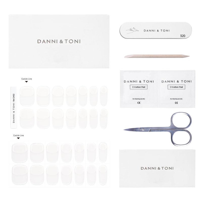 DANNI & TONI Semi Cured Gel Nail Strips Classic French (Crystal Frost) Sheer French Gel Nail Stickers with White Tips Glossy Nail Polish Wraps 28 Stickers