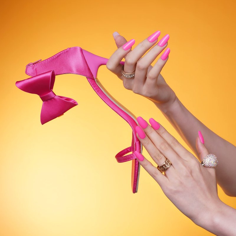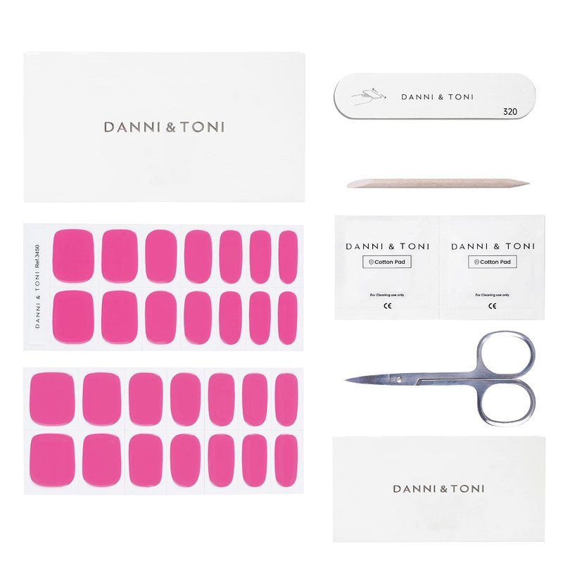DANNI & TONI Semi Cured Gel Nail Strips (Hot Pink) Gel Nail Wraps Neon Pink Solid Color 28 Stickers