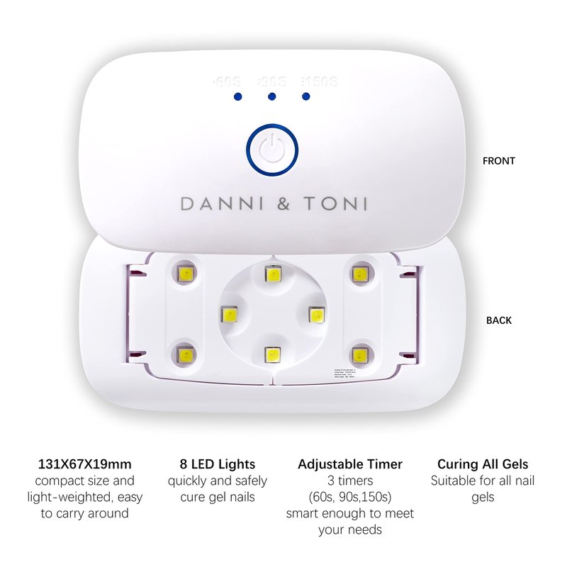 DANNI & TONI UV LED Gel Nail Lamp 10W Professional Nail Lamp with Precision Timing - 60S, 90S, 150S Settings for Salon-Quality Results at Home