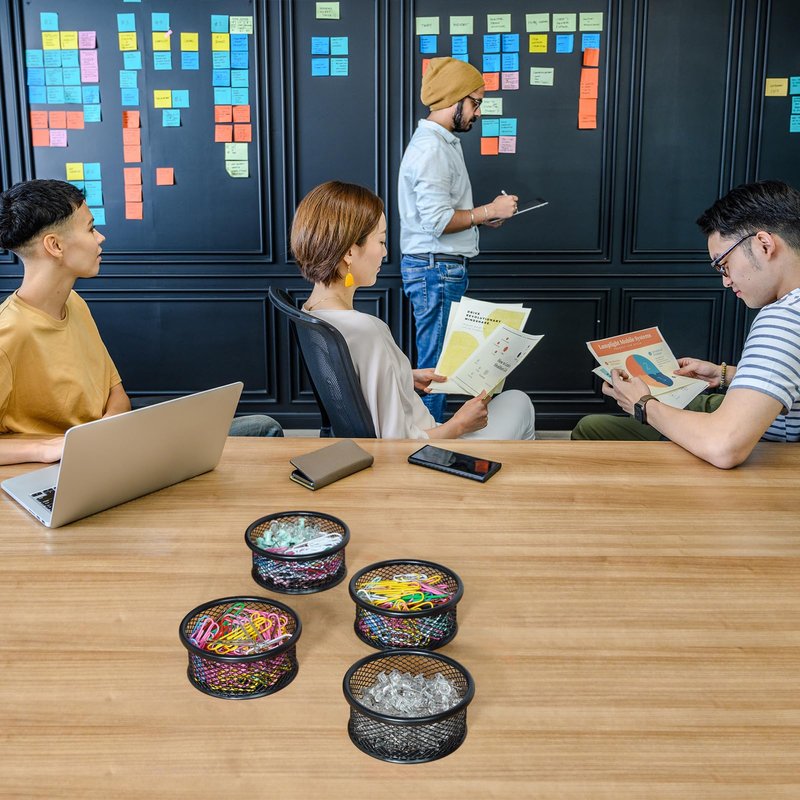 DANRONG Paper Clip Holder for Desk, Paper Clip Holders, Mesh Paperclip Holders Metal Paper Clip Dispenser Organizer for Desk Binder Clip Holder Container for Home Office School, Black 4 Pack