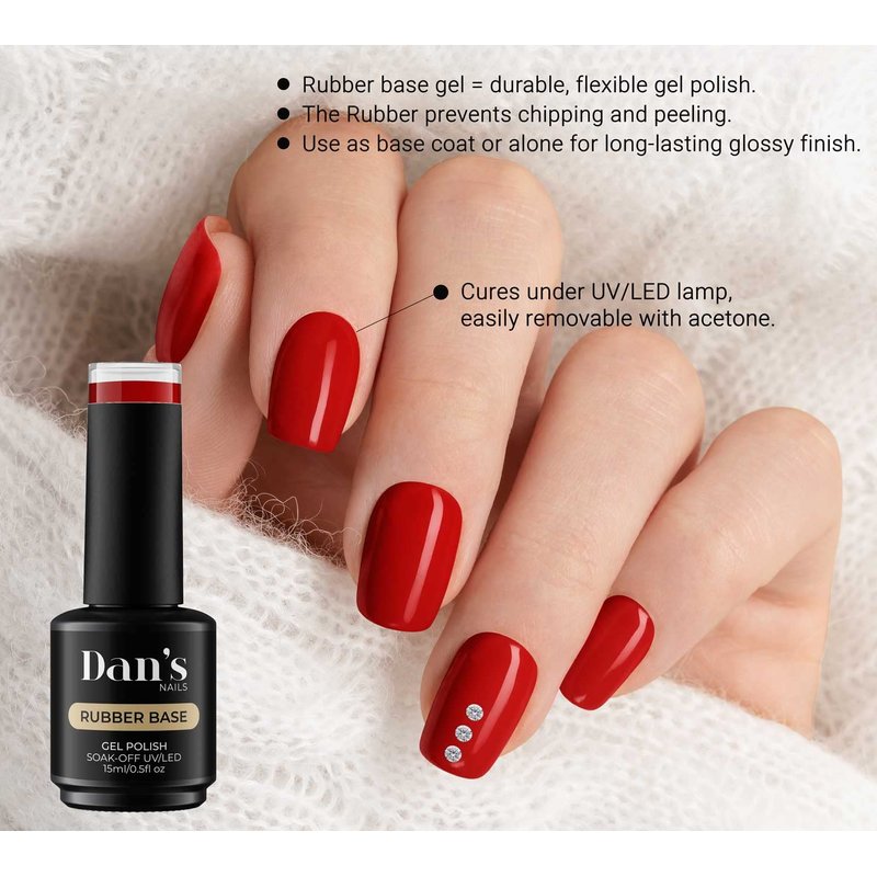 - Say goodbye to weak and peeling nails with Dan's Nails Rubber Base Gel products! Designed to deeply strengthen and fortify your nails, it protects them from damage and provides support for nail growth. And with its long-lasting, chip-resistant formula, you can enjoy beautiful Chilli Red nails that stay strong for up to 31 days.
