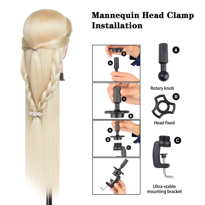 - Come with: Mannequin head + DIY braiding set+ table clamp.