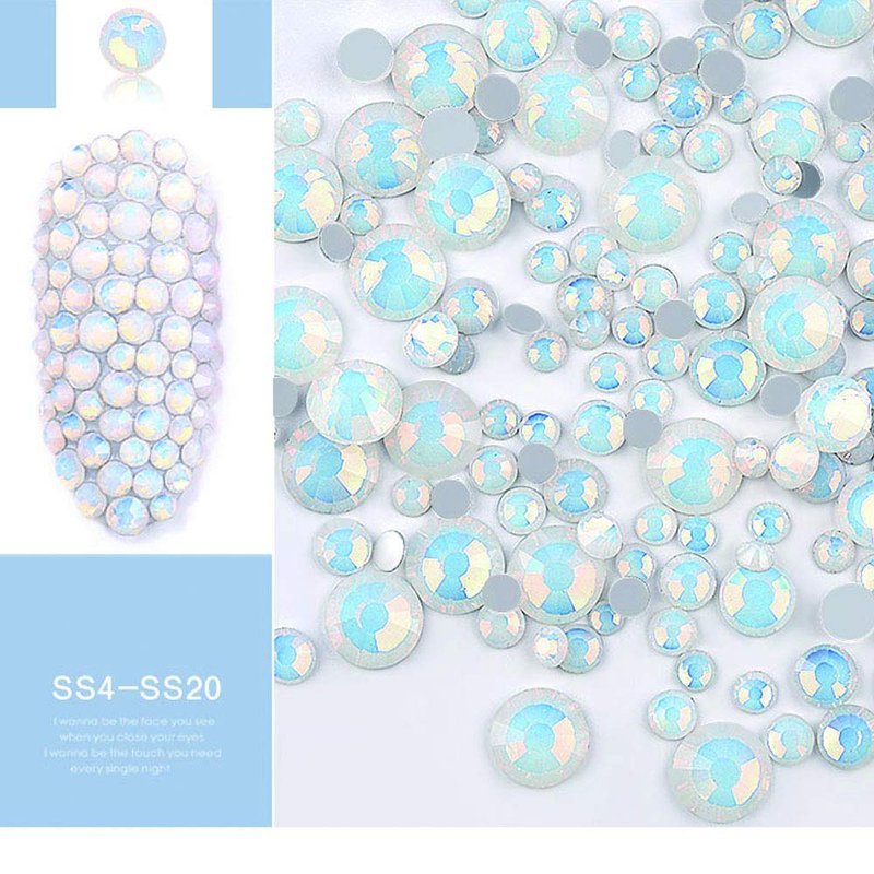 - đ1. ăSALON QUALITY SPARKLY CRYSTALă - Comparing with cheap plastic material diamonds, ours flat back opal rhinestones for nails is made of glass crystal, it is harder, and anti-scratch, more durable. Comes with 14 facets cutting, reflects light very well, beautiful shiny colors dance with the light.