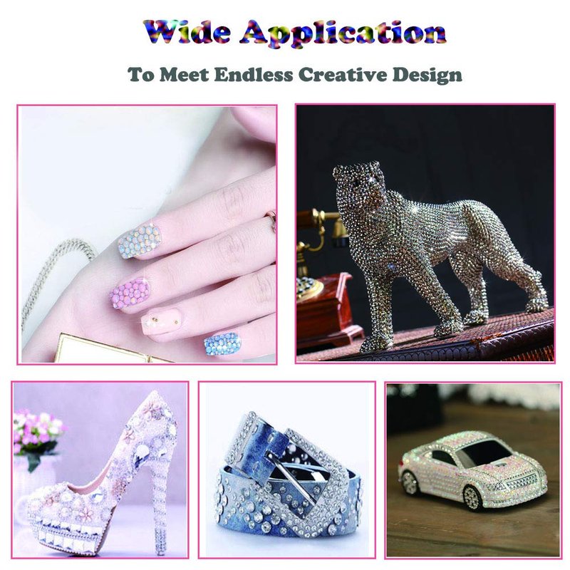 - đ3. ăWIDE APPLICATIONă - the 3d rhinestones for nails are suitable for nail decoration, nail art design, Halloween Makeup, make the nails sparkly and amazing bling bling. But not stop at this, nail jewels rhinestones can also be used to for crafts, like decorating shoes, wedding dress, jeans, phone case, cars, and what ever project DIY.