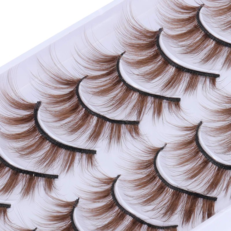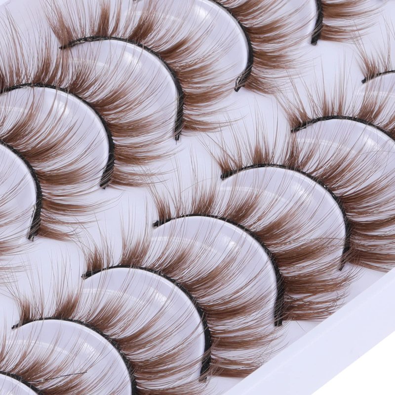 DAODER False Eyelashes Brown Colored Lashes Natural Look Cat Eye Wispy 15mm Blonde Mink Lashes Soft Handmade Reusable Fake Eyelashes Pack 10 Pairs(Brown Lashes)
