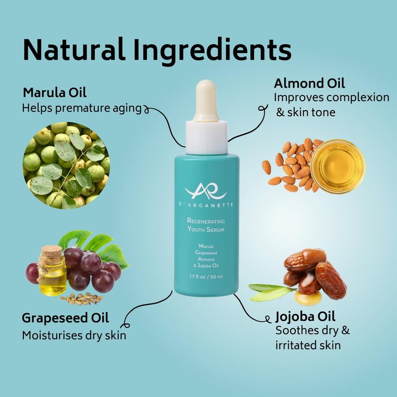 D'Arganette Regenerating Youth Serum Facial Oil Infused With Marula, Grapeseed, Almond & Jojoba Oil- Anti-Aging Moisturizer Face Oil For Dry Skin, Fine Lines & Wrinkles 1.7 oz- Made In USA