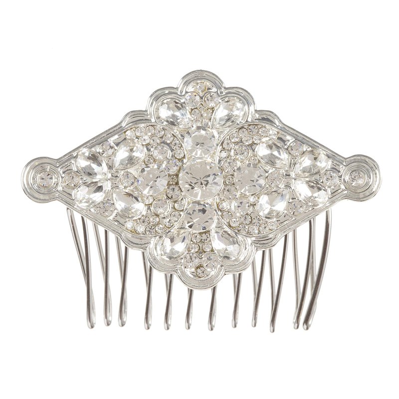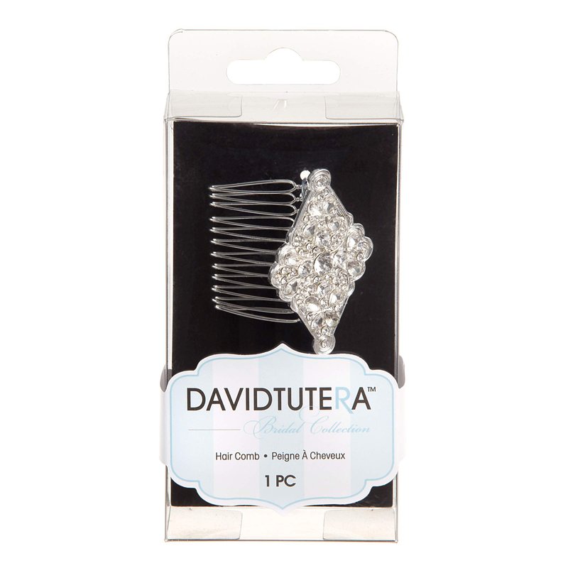 Darice David Tutera Bridal Silver Metal Design w Rhinestone Diamond-Shape Hair Comb