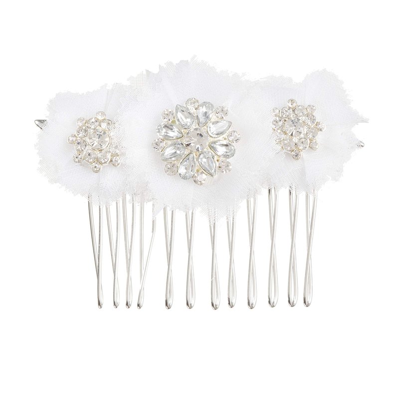 Darice David Tutera Bridal Tri-Cluster w/Netting Silver Rhinestone Flower Hair Comb