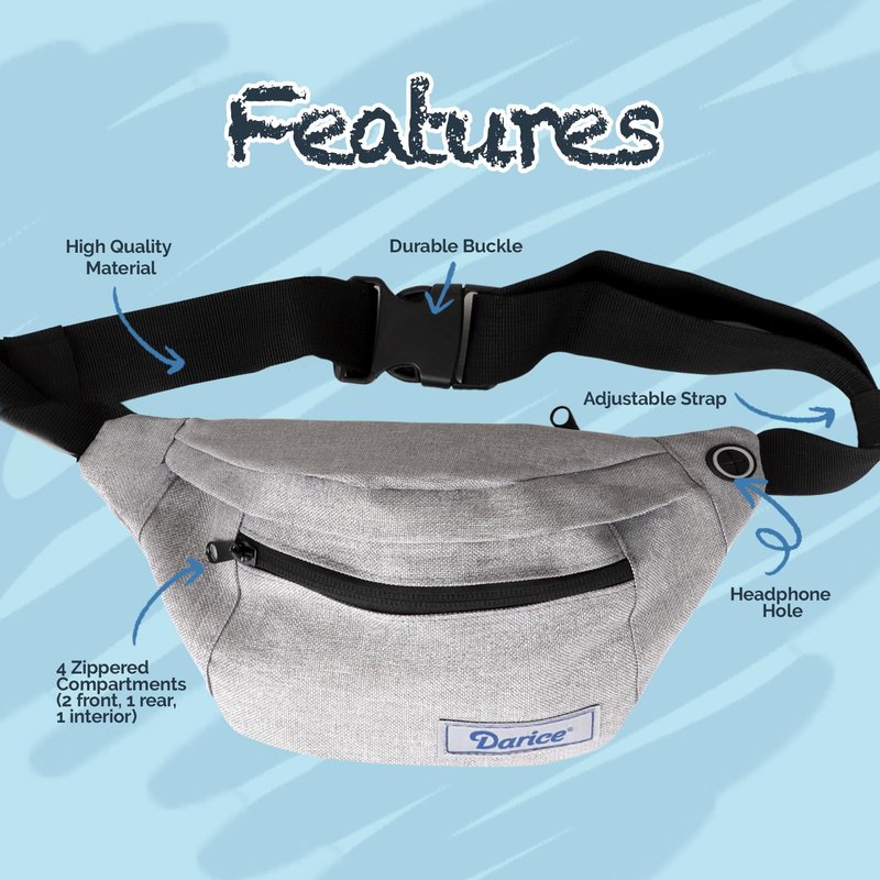 6. High-quality fanny pack with 4 zippered compartments, headphone hole;