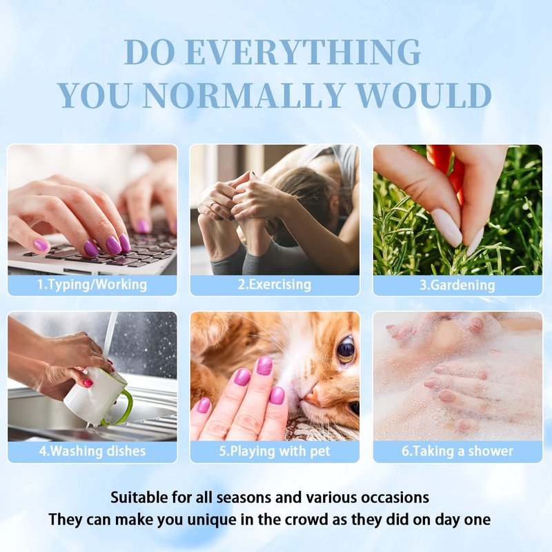 - 【Do What You Love】Whether you're a professional,a busy parent, or simply someone who loves to experiment with different nail designs,artificial nails short length offer a hassle-free solution.Natural press on nails acrylic can be easily applied in minutes,reusable fake nails for girls are allowing you to focus on doing what you love without any limitations or disruptions.