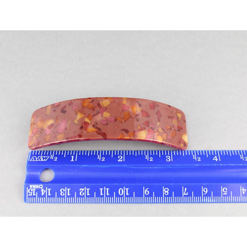 Dark Brick Red barrette plastic marbled pattern rectangle hair clip accessory 3.25 inches long
