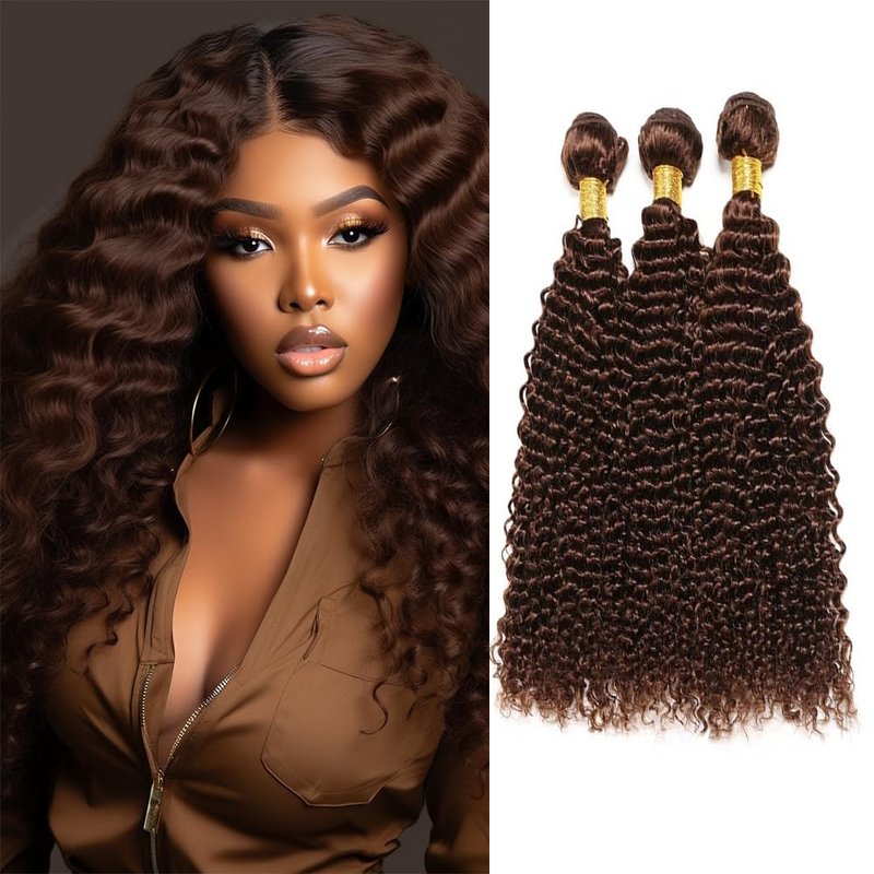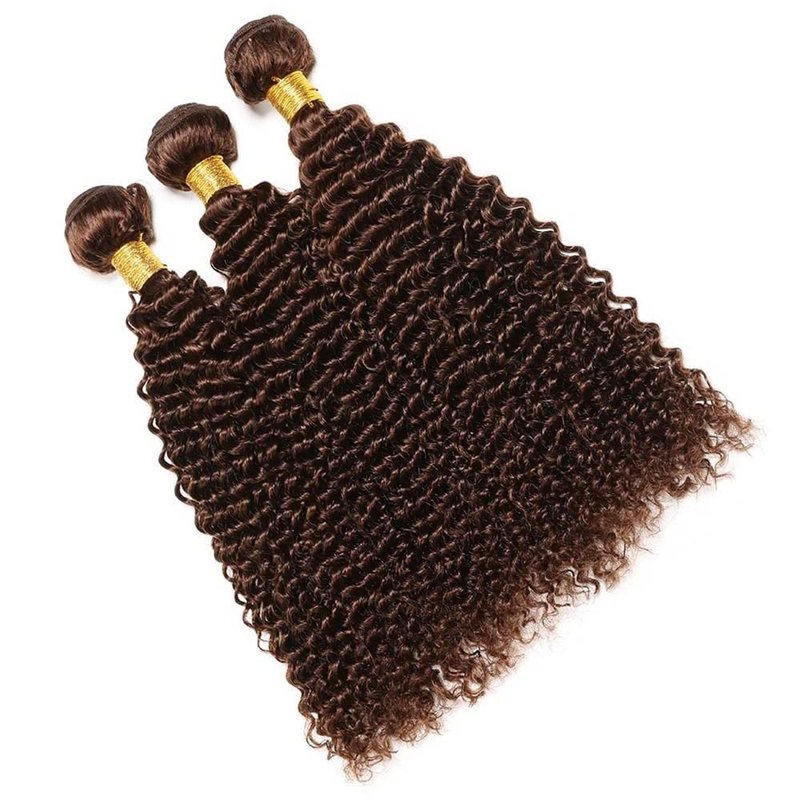 Dark Brown Deep Curly Bundles Color 4 Human Hair Chocolate Loose Deep Wave Bundles 10 12 14 inch 8a Grade Double Weft Brazilian Remy Hair Extensions Wet and Wavy Bundles Silky Soft