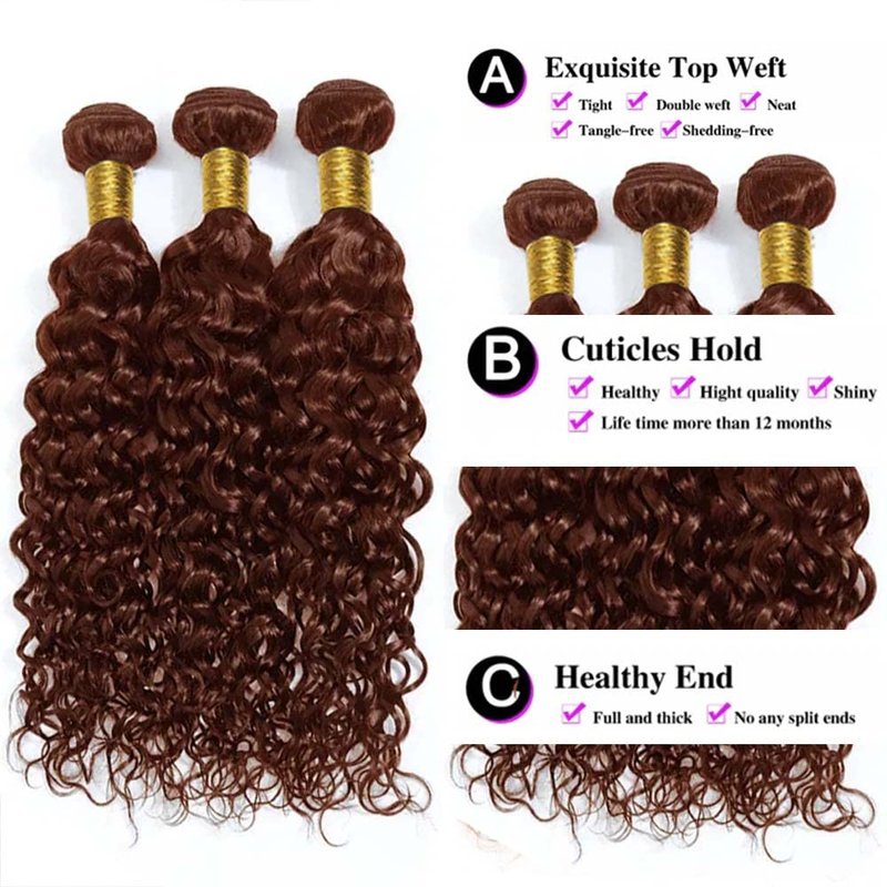 - Human Hair Bundles Color:Brazilian Water Wave Human Hair 3 Bundles,Human Hair Color 4,Soft and Buncy, 100(+/-5)g Each Bundle.