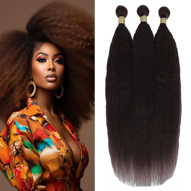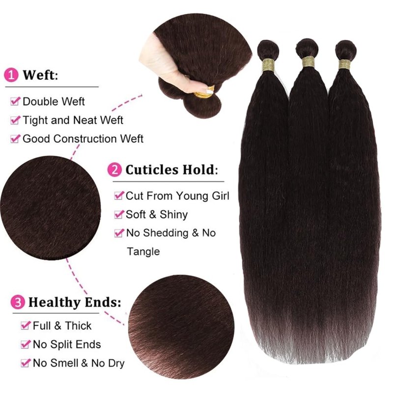 - Human Bundles Hair Color:Brazilian Yaki Straight Human Hair 3 Bundles,Human Hair Color 4,Soft and Buncy,100(+/-5)g Each Bundle.