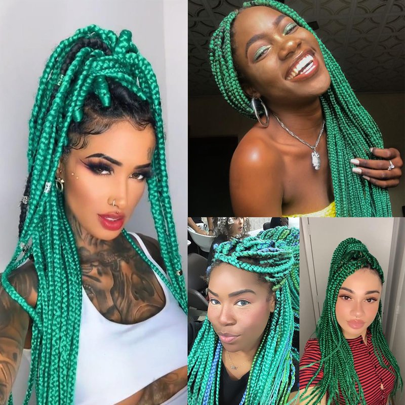 Dark Green Pre stretched Braiding Hair, 26 Inches Kanekalon Box Braids Hair Extensions, 6 Packs Yaki Texture Braiding Hair Pre stretched