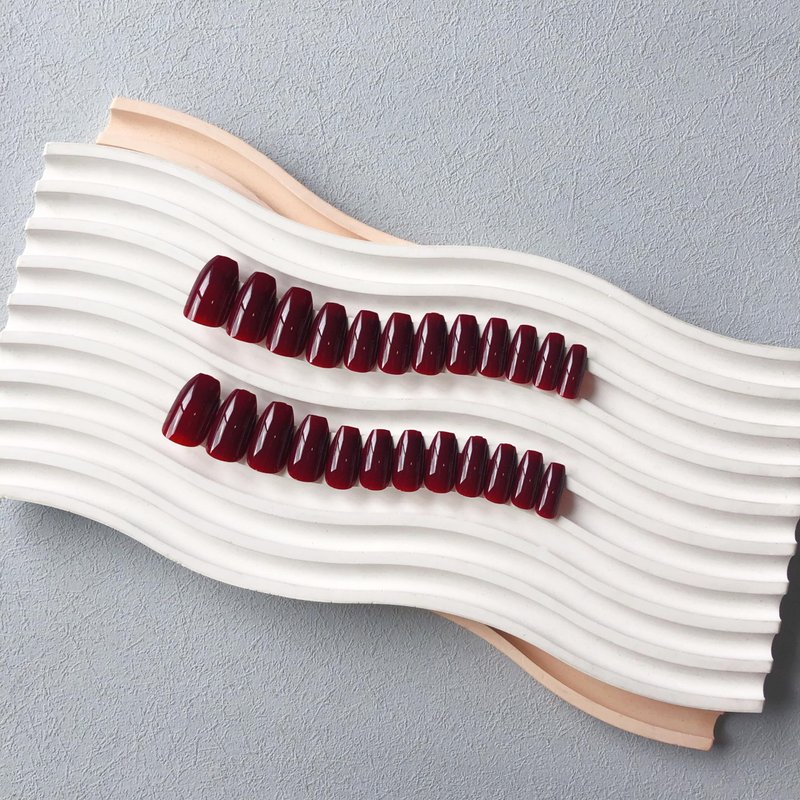 Dark Red Press on Nails Medium Short Square,Xcreando Fall Winter Fake Nails Medium Glue on Nails Trapezoid Shaped,Short Ballerina Coffin Nails Press ons,False Nails Acrylic Nails Set in 24 PCS