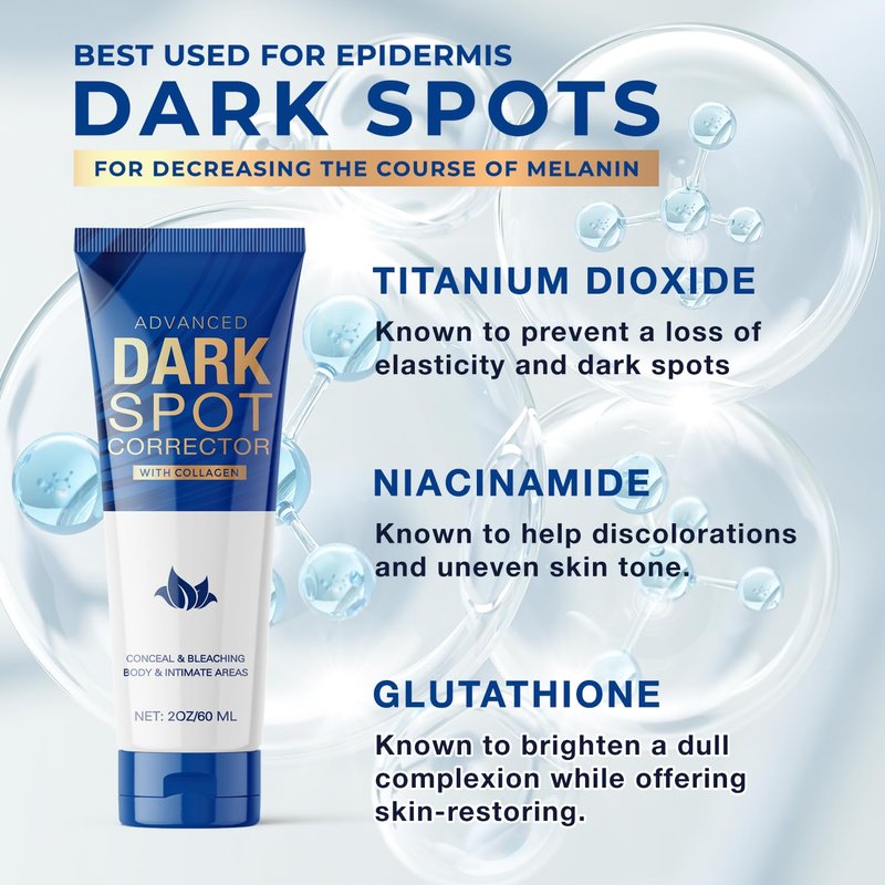 - ADVANCED FORMULA FOR DARK SPOT CORRECTION - Our formula incorporates α-ARBUTIN, Titanium Dioxide, Glutathione, and other active ingredients that aid in sun protection, evening out skin tone, and diminishing the appearance of dark spots, age spots, and sun spots.